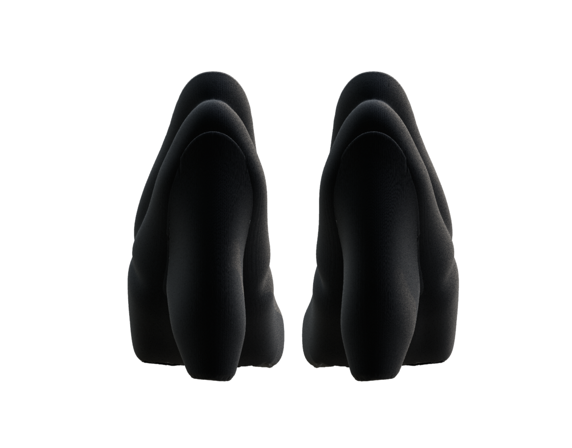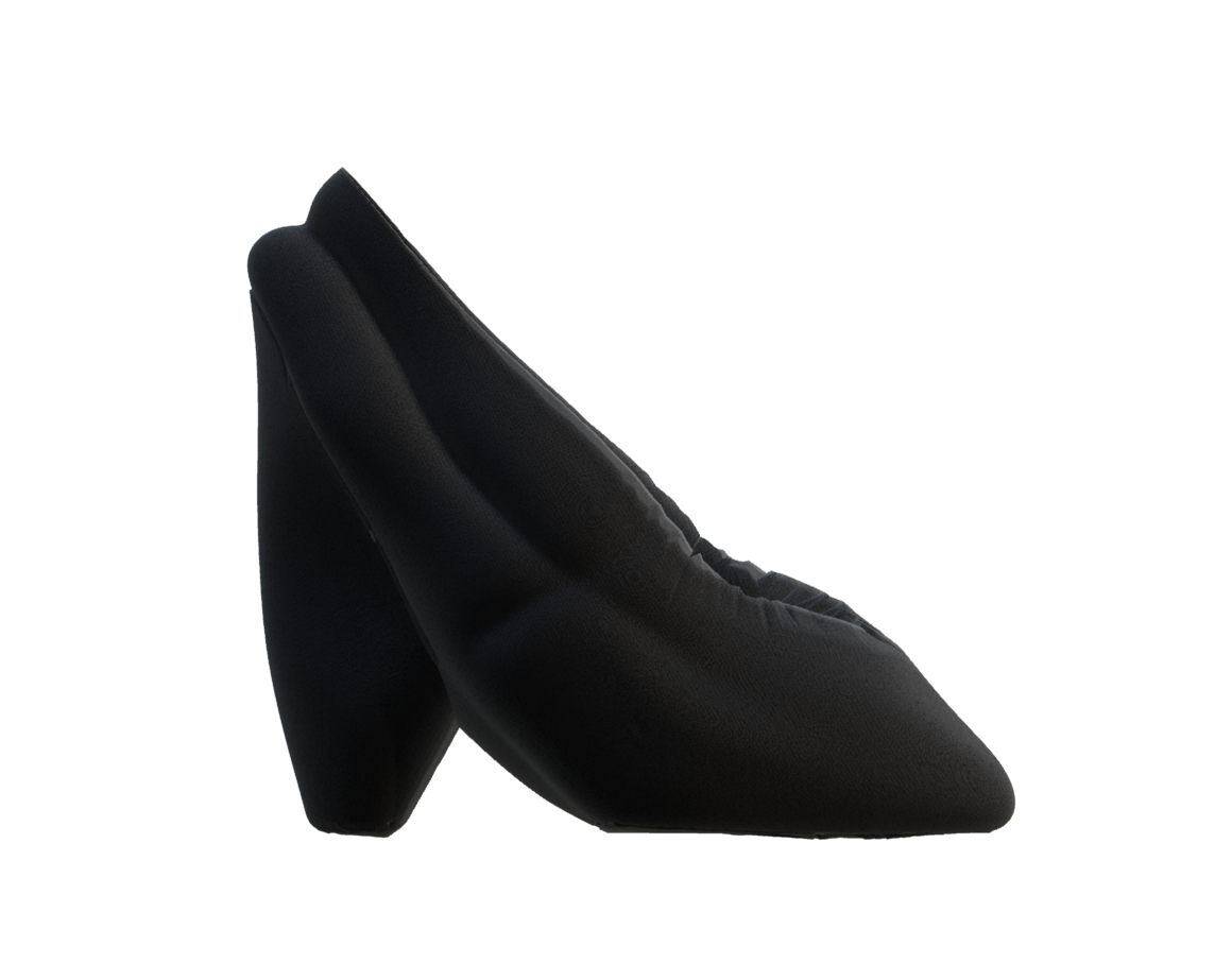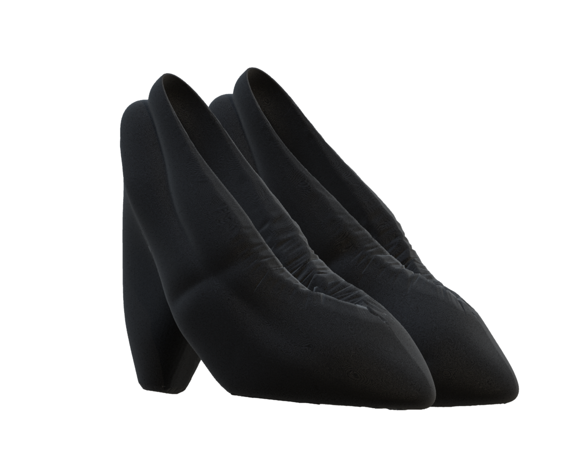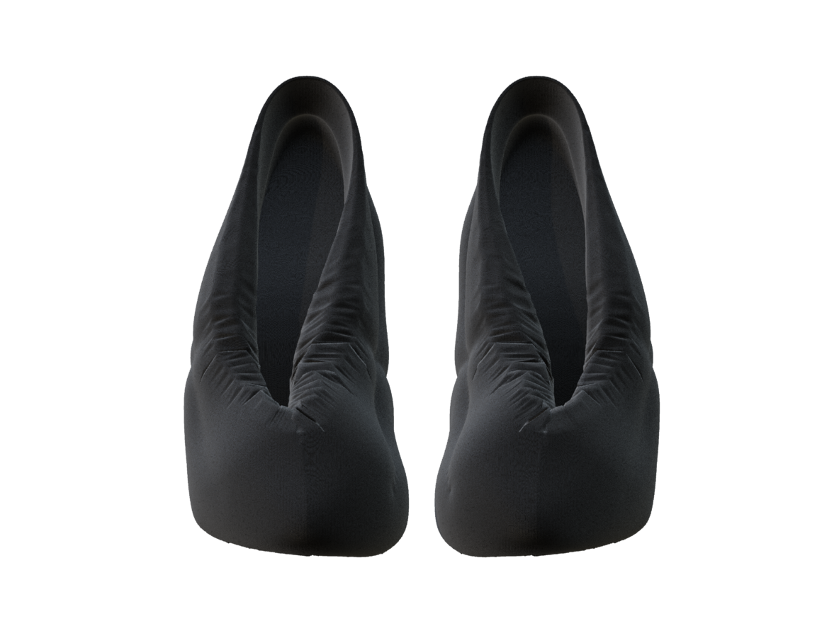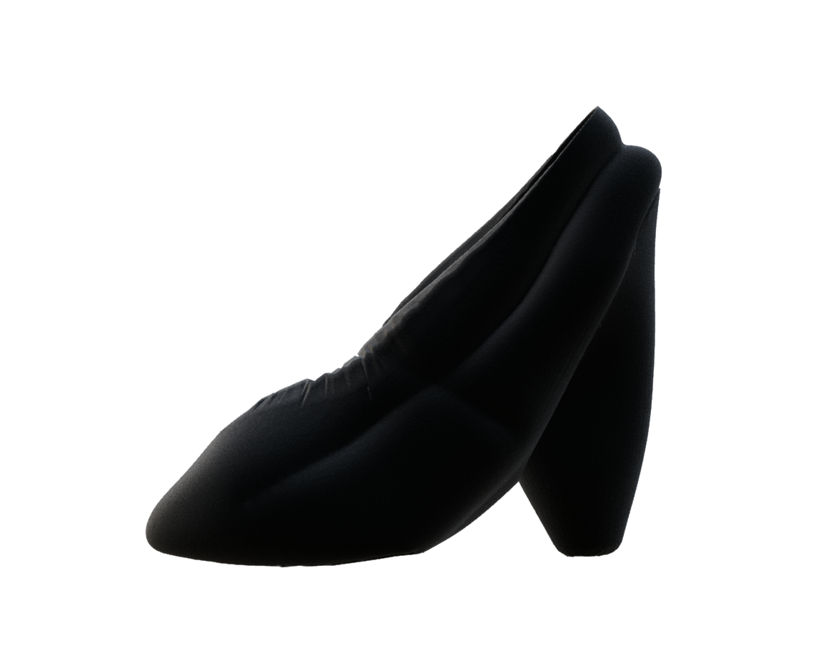 Exploring air-blown nylon forms in a stiletto silhouette—refining volume, tension, and lightness around feet.